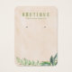 Stilvolle Ohrring-Display-Halter mit zwei bedruckten Lochmarkierungen auf einem Texturhintergrund aus handgefertigtem Papier. Eine wirklich elegante Darstellung Ihrer alten Gold-, Kupfer- und Steinohrring-Meisterwerke. Passen Sie den Schriftart für den Namen Ihres Unternehmens an oder nutzen Sie den eleganten hier. Reverse zeigt Ihre Website und Adresse gegen die gebürstete warme Stuckstruktur gerahmt mit Grün.