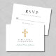 Green Script Religious Cross Boy First Communion RSVP Card.