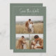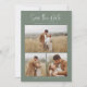 Green Simple Calligraphy Script Modern Four Foto Save the Date verfügt über ein Trio von Fotos auf der Vorderseite, zusammen mit modernen, minimalen Typ. Ein Single großes Foto auf der Rückseite, mit Ihrer Hochzeitswebsite.