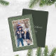 Mit dieser Urlaubsfotokarte mit zeitlosem, grünem Design und zartem Winterschneeflockendetails liebt Wish ein frohes Weihnachtsfest. Zeigen Sie Ihr beliebtes Foto in einem Layout, das schlichten Stil mit klassisch eleganter Schrift-Typografie verbindet. Diese elegante Karte ist ideal für alle, die ein raffiniertes Aussehen Liebe haben. Sie ist eine wunderschöne Art, Wärme zu teilen und diese Feriensaison zu genießen.