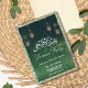 Une invitation à dîner de l'Aïd avec un simple arrière - plan de fête de l'Aïd vert. La carte de luxe est facile à customiser avec votre libellé, les options de forme de papier et le choix de types de papier. La carte idul Adha contient également le mot calligraphique arabe Eid al Adha et la palette verte du design semble étonnante sur le devant tandis que l'effet scintillant contrastant à l'arrière rend cette élégante invitation de fête Eid vraiment unique.