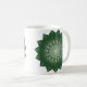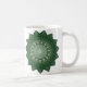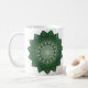 Mandala kosmische Diagramme inspirieren mit dünnen Linien und kompliziertem Weben. Das sich wiederholende, auffällige Muster schafft ein symmetrisches Design mit einer durchsichtigen Spitze wie visuell. Die Form folgt einer Zickzacklinie, die das ganze Bild an einen Stern erinnert. Die Farbauswahl ist frisch, basierend auf schönen Grüntönen mit einem diskreten Farbverlauf, der die Kraft der Natur, des Lebens, der Auferstehung, des Vertrauens nahe legt.