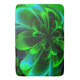 Bath Mat stilisierte grüne Blume mit abstraktem Look, erstellt mit Fraktal-Tools, die eine bestimmte Formel verwenden, anstatt eine echte grüne Blume als Modell zu transformieren. Das Bild zeigt eine besondere Harmonie, bei der die Blätter in Kontur und Aussehen leicht voneinander abweichen, obwohl das gesamte Design aufgrund der verwendeten Fraktal-Geometrie perfekt harmonisiert ist. Die Blume hat auch eine besondere Dynamik, da alle ihre Blätter aus der Mitte der Form gezeichnet werden und sich bis zum Rand hin biegen, sodass die Mitte wie ein Drehzentrum ist. Insgesamt ist das Design eine schöne grüne abstrakte Corolla, die gerade eröffnet wurde, auf einem trüben Hintergrund in Grün.