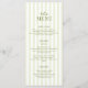 Set the tone for your special day with this timeless and sophisticated wedding menu card, featuring soft sage green vertical stripes and a casual handwritten typography. The delicate color palette creates a fresh, romantic feel, perfect for an outdoor summer venue.