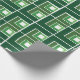 Dieses Verpackungspapier hat ein geometrisches Design aus Ls in Grüntönen, die in verschiedenen Richtungen angeordnet sind und sich durch das Design wiederholen.