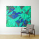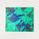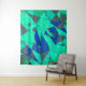 Green triangular cutouts on blue background, rough wandteppich