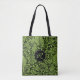 Eine stilvolle Monogramm-Tasche in einem tropischen Damastmuster in Grün und Schwarz. Personalisieren Sie das Monogramm mit Ihrem ersten oder anderen Text. Sie können auch das Monogramm und die schwarze Medaille entfernen, wenn Sie die Tasche ohne sie bevorzugen.