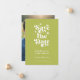 A Modern Retro Typography over a citrus green background, Photo Wedding Announcement Flat Card. With a unique typography "save the date" on the front, with names and date in a simple and minimal design on the back, add your wedding website for event details. The couple's photo is a full-frame photo. A unique and affordable Wedding Save the Date for couples on a budget. Choose prints and/or a digital announcement download.