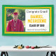 Hängen Sie dieses Green und Gold Grad Foto Banner, um Ihre High School oder Uni Absolvent zu feiern. Personalisieren Sie mit dem Foto Ihres Absolventen, dem vollständigen Namen, dem Unterrichtsjahr und der Schule. Die goldene und grüne Grenze um das Foto Ihres Absolventen, ihr Name in grün und "Glückwunsch Grad!", das Klassenzimmer und die schwarze Schule.