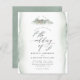 Billig grüne Blätter & Hochzeitseinladung. Wenn Sie Ihre Hochzeit im Freien oder einfach nur im Grünen und in den Bergen der Liebe feiern möchten, ist diese Einladung für Sie perfekt! Mit grünen Aquarellfarben-Blätter um einen schicken Skript-Schriftart, einen Berg und eine Blockhütte-Abbildung oben mit Bäumen. Ihre Hochzeitsdetails werden in klassischer Serifentypografie auf einem verblassten Aquarellhintergrund angezeigt. Umkehrend zu einer dunkleren grünen Aquarellfarbe. Ideal für rustikale Hochzeiten oder für Hochzeiten mit ländlichem Thema.