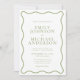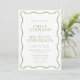 This wedding invitation features a clean white background with a soft green wavy outline and matching green typography. The thin wavy border adds an elegant, organic touch while keeping the overall design minimal and refined. The green and white color palette creates a fresh, natural look that is perfect for garden and outdoor weddings.