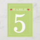 Green Wedding Tischnummer Cards von Red Heart Lime Green: Benutzen Sie diese eleganten Tischnummern, um Ihre Hochzeitsgäste an Ihrem Hochzeitsempfang zu begleiten. Individuell mit Ihren eigenen Zahlen und Farben anpassen. Wenn Sie die Grafik ändern möchten, kontaktieren Sie mich bitte über meinen Shop. AntiqueChandelier©