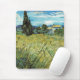 Grünes Weizenfeld mit Cypress. Vincent van Gogh. Niedliche Sommerlandschaft. Es gibt ein Haus auf einem grünen Feld. Neben dem Haus wächst ein Baum. Auf dem Feld ist großes Gras. Wolken laufen über den blauen Himmel. Reproduktion berühmter Kunstbilder im öffentlichen Bereich.