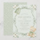 Whimsical green bow with ribbons and bows form a vintage frame for this lovely baby shower ivitation. Soft green background. Vintage teddy bear and green baby bib overalls accent the corners with white hydrangeas mixed with greens in each corner. A perfect invitation for a perfect event. Gender neutral style. 100% customer satisfaction at Zazzle every day.