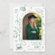 Une faire-part graduée qui allie fantaisie et charme rétro. Décoré d'illustrations de style gribouillis dessinées à la main, ce design vert et blanc mêle une palette de couleurs classique à une ambiance fraîche et ludique. Les doodles créatifs - une casquette de graduation, un ordinateur portable, un sac à dos, des livres, du café, un crayon, un diplôme, un ballon et des étoiles - ajoutent une touche de légèreté à votre grande réussite, le rendant à la fois branché et unique. Chaque élément peut être redimensionné, repositionné ou supprimé, si nécessaire. L'écriture manuscrite du diplômé crée un cadre autour de votre photo. Personnalisez le modèle avec votre année, votre nom et votre école. © Kimbellished, LLC