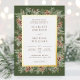 Invitations de mariage Green Winter Gold Foil. Ce véritable faire-part de mariage de vacances d'hiver en feuille d'or présente une aquarelle peinte à la main et des pinecones disposés comme un beau cadre. Le texte est brun, et l'arrière - plan vert foncé. Le fond comprend un bouquet assorti élégant sur un arrière - plan vert. Trouvez les articles correspondants dans la collection Vacances de Noël Pinecone and Greenery.