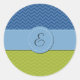 Green Zigzag, Blue Zigzag, Zickzack, Monogram Runder Aufkleber