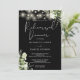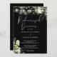 Elegante Saitenlichter, Blumengrün, Schwarz-Weiß-Probe-Dinner-Einladung mit Ihren Namen und Probe-Dinner Details Set in schicken Text und Ihre Monogramm-Initialen auf der Rückseite. Entwickelt von Thisisnotme©