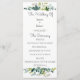 Der Blumenstrauß in den hübschen Farbtönen Grün und Grau des Hochzeitsprogramms. Personalisieren Sie Stil, Farbe und Größe des Schriftartes. Die Hintergrundfarbe kann auch an Ihr Thema angepasst werden. Entsprechende Artikel finden Sie in unserer Greenery Wedding Collection.