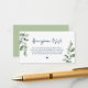 This is the Modern casual Greenery eucalyptus, in navy blue script, with green watercolour background at the back page , Script minimalism, typeface font, Wedding Enclosure Card.