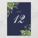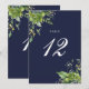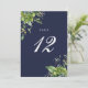 Diese eleganten botanischen Tischnummern mit Blumen können in schicken Typografie auf marineblau-blauem Hintergrund personalisiert werden. Die Karten werden auf der Vorder- und Rückseite gedruckt (doppelseitig). Entwickelt von Thisisnotme©