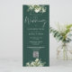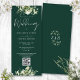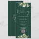 Eine grüne Blumen-Hochzeitseinladung mit eleganter Kalligraphie-Schrift Typografie und Ihrem Hochzeitswebsite QR-Code auf einem smaragdgrünen Hintergrund. Entwickelt von Thisisnotme©