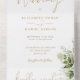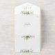 Alle in einer Hochzeitseinladung mit botanischen grünen rustikalen Blätter und eleganter Goldtypografie. Die Einladung enthält eine perforierte RSVP-Karte mit QR-Code. Entwickelt von Thisisnotme©