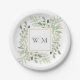 Greenery Foliage Gold Monogram Wedding Paper Plate Pappteller