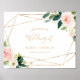 Dieses grün & goldfarbene, geometrisch elegante Begrüßungspaket ist perfekt für eine rustikale Hochzeit. Das Design besteht aus hübschen Rose in Weiß, Rosa und Rosa, die von Hand gestrichen wurden, und einer Touch Grün, vergoldeten geometrischen Rahmen, die künstlerische Schönheit inspirierend. Machen Sie dieses Poster zu sich, indem Sie den Namen der Braut und des Bräutigams und das Datum der Hochzeit einschließen.
