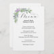Dieses Aquarellmenü-Design ist vollständig editierbar und steht Ihnen zur Eingabe Ihrer Informationen zur Verfügung. Die Blumen sind Lavendelfarben, die mit Eukalyptus-Boxholz und Farnen eingesteckt sind. Passen Sie die Papierform, den Papiertyp und den gesamten Text an.