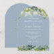 Greenery Lights Monogram Dusty Blue Wedding Einladung