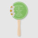Hübscher Hochzeitsfan im Frühjahr und Sommer in frisch grünem Grün, mit weißem gepunktetem Kreis, rund um die Außenkante und drei weißen und gelben Gängen, die die links Seite schmücken. Personalisieren Sie den Text für Ihren Hochzeitstag.