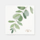 Eukalyptus Stem Greenery Wedding Cocktail Napkins. Weißer Hintergrund. Goldmonogramm.