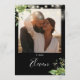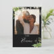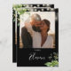 Diese eleganten botanischen grünen Blumenstrauß Lichter Hochzeit Tischnummern können mit Ihrem Foto und Tischnummern in schicken Typografie auf einem schwarzen Hintergrund personalisiert werden. Die Karten werden auf der Vorder- und Rückseite gedruckt (doppelseitig). Entwickelt von Thisisnotme©