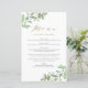 Fügen Sie Ihrem Tischdeck einen grünen Akzent mit dieser individuell gestaltbaren Karte. Es zeigt Aquarellbilder und Muster von Blattwerk und weißen Blume. Diese Karte ist perfekt für Frühjahr- und Gartenhochzeiten und andere Veranstaltungen geeignet.