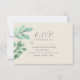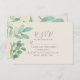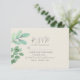 Elegante RSVP Karte mit weicher Aquarellfarbe auf cremigem Beige. Diese Karte ist ein modernes botanisches Design mit kalligraphischen Details und bietet eine Auswahl an Gerichten und ist ideal für rustikale Hochzeiten im Freien oder im Garten.