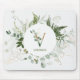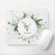 Dieses Mousepad verfügt über einen hübschen grünen Blattwasserfarn und einen Eukalyptuskranz und ein Alphabet "V", das mit ihrem Namen darunter personalisiert werden soll.