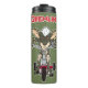 Karo aus diesem beängstigenden Design mit Stripe Reiten eines Dreirades.