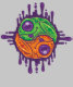 Illustration de dessin de grenouilles vertes et oranges recouvertes d'un symbole du yin yang trippy. Tags : grenouille, yin, yang, trippy, treefrog, amphibien, animal, crapaud, yinyang, yin-yang, arbre, poison, flèche, fléchette, dessin animé, vert, orange, pourpre, goutte, goutte, langue, liquide, mignon, symbole