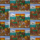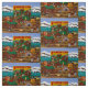 Das Stoffbild stammt aus einem Originalgemälde namens "Frontier Town" vom internationalen Künstler Jennifer Lake. Vintage Spielzeuge, Züge, eiserne Spielzeuge sind zu sehen, und sogar Cowboys, die sie hinaufpeitschen. Jeder kleine Cowboy oder Cowgirl würde diesen Stoff zur Liebe ihrer Zimmer.