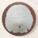 Photo d'un dollar de sable sur arrière - plan en cuir marron centré sur le dessous de verre.