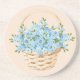 Le dessous de verre de grès est montré avec un imprimé d'art de bleu mignon oubliez-moi pas les fleurs dans un panier. Customisez cet objet ou achetez tel quel.