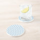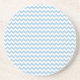 Un élégant Dessous de verre rond en grès ou un tapis de boisson, avec un motif de chevrons bleu et blanc.