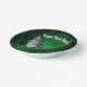 This paper bowl has a grey furry bat with wings spread in flight in front of a spooky glowing green cave with trees. Customise your text with the template.
