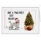 A joyful grey poodle looks with anticipation at the decorated Christmas tree. Filled with lights and ornaments with presents under the tree, excitement awaits! Cute card to send on Christmas wishing happy holidays and a happy new year!