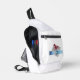 Grey Square with Red Stain and Blue Circle Text Crossbody Bag