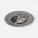 Das Gesicht eines grauen Holzwolfs mit leuchtend orangen Augen. Realistisches Kunstwerk aus einem originalen Ölgemälde des Pferd- und Wildtierkünstlers Crista S. Forest.