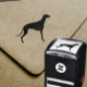 Greyhound Silhouette Selbstbewusste Briefmarke. Diese Briefmarke der Silhouette ist ideal für alle Ihre Prägebedürfnisse. Ein Grauhund-Silhouette-Spaß mit einem vorbedruckten Stempel auf Buchstaben, Karten, Umschlägen und vielem mehr.