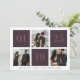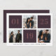 Mit diesem Chic können Sie Ihre nächsten Nuptials bekannt geben und die Dattelkarten mit drei Ihrer beliebten quadratischen Fotos und Ihrem Hochzeitstag in einem gegrillten Layout mit abwechselnden bordeauxfarbenen Pflaumenquadraten speichern. Unter "Save the Date" erscheint neben Ihren Namen und Ihrem Hochzeitsstandort "".