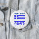 Personalisiertes Button mit der griechischen Flagge und dem Wort GRIECHENLAND unten in blau. Die Flagge zeigt blaue und weiße Streifen mit einem blau-weißen Kreuz in der oberen rechten Ecke. Fügen Sie darüber einem kleine Geschenk einen Namen für eine personalisierte Touch hinzu. Spaß beim Tragen bei Wiedersehen.